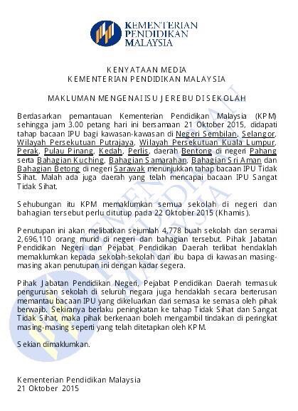 Oleh kerana jerebu, sekolah akan ditutup pada 22/10/2015 (Khamis).