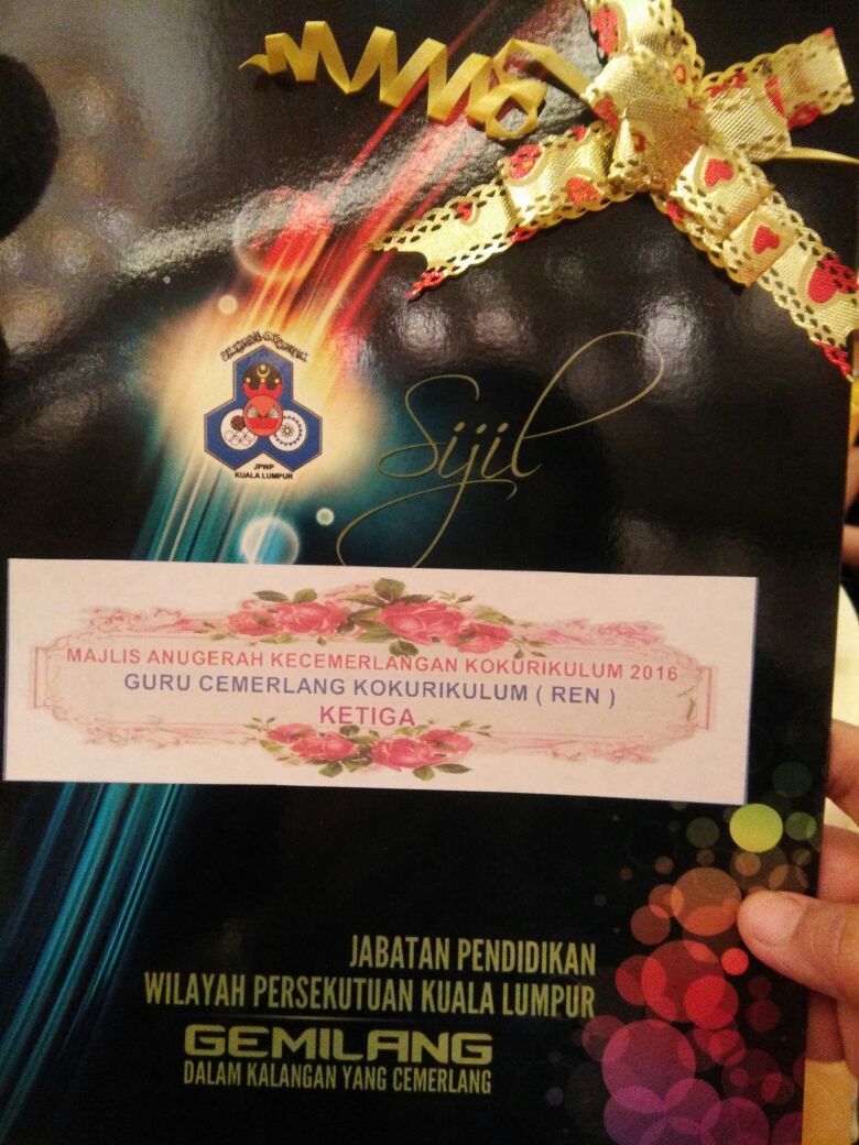 Tahniah kepada Cikgu Norlita kerana telah mendapat tempat ketiga dalam kategori guru kecemerlangan kokurikulum sekolah rendah.