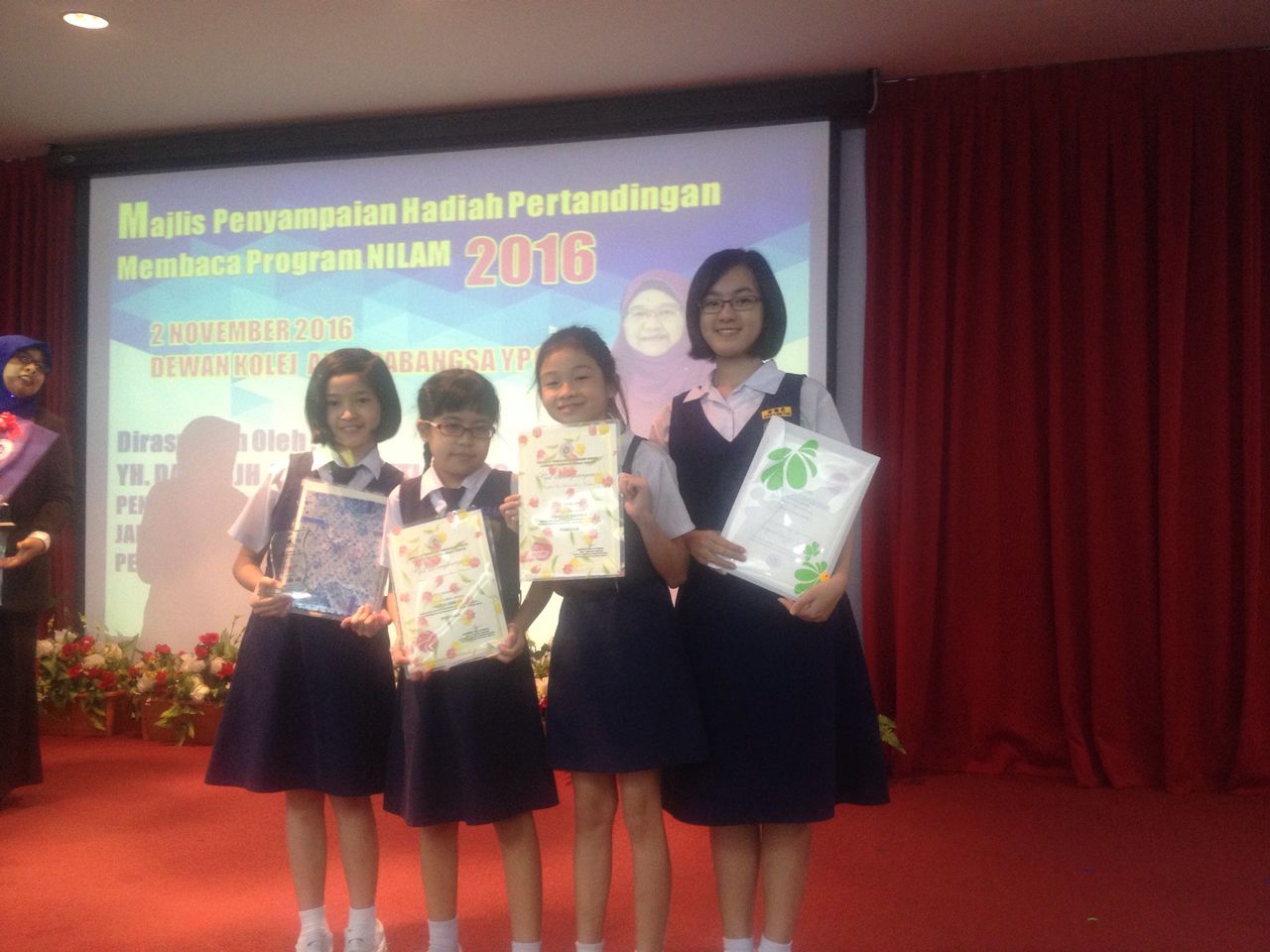 启智的王欣妍,戴颖琦,黄子秦分别荣获2016 度 Pertandingan Membaca Program Nilam 州级赛低年级组的冠、亚和季军。曾镛恩同学则荣获高年级安慰奖。