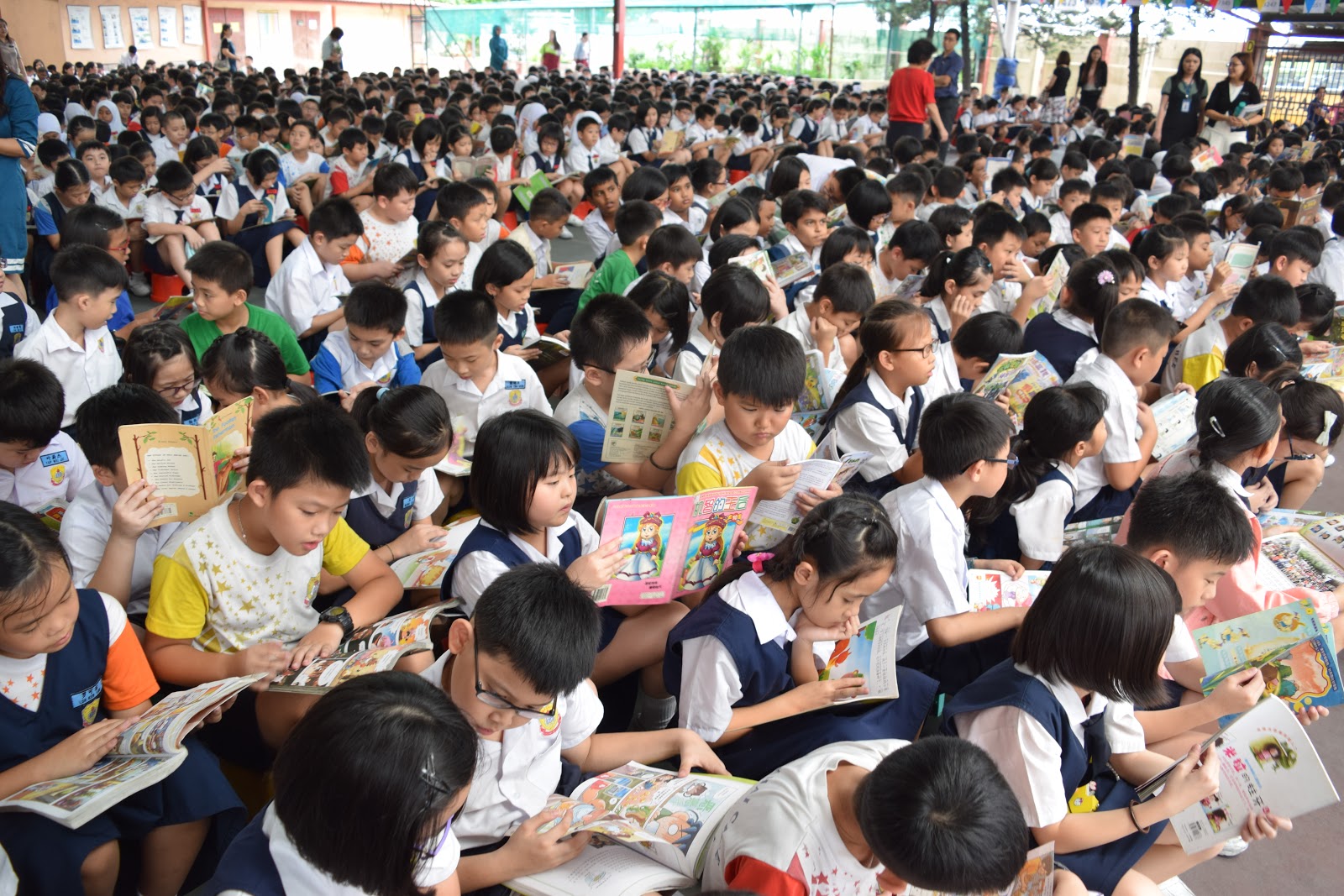 师生集合在篮球场一起阅读10分钟