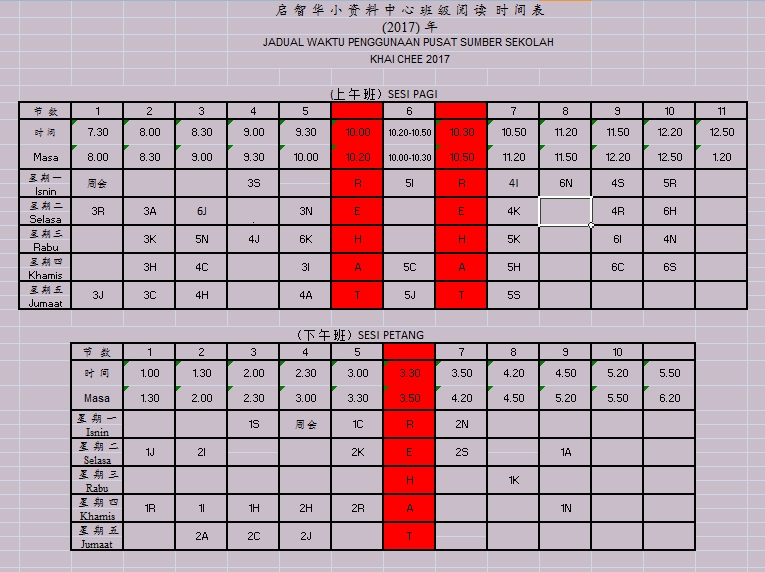 班级阅读时间表