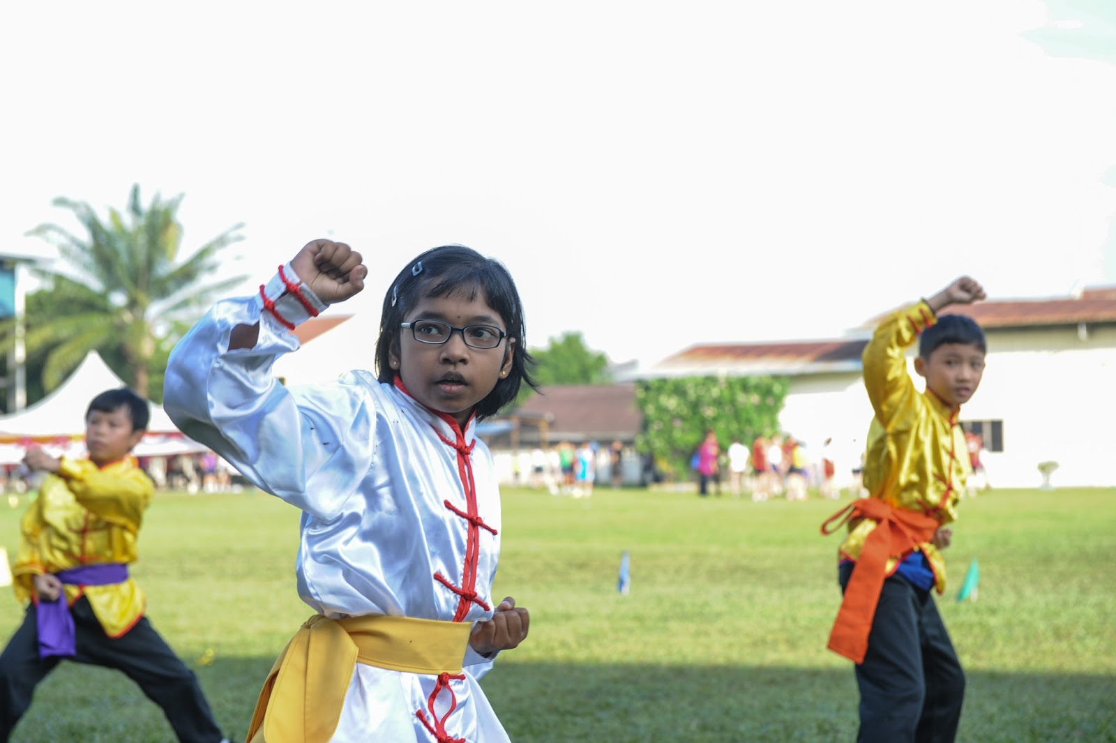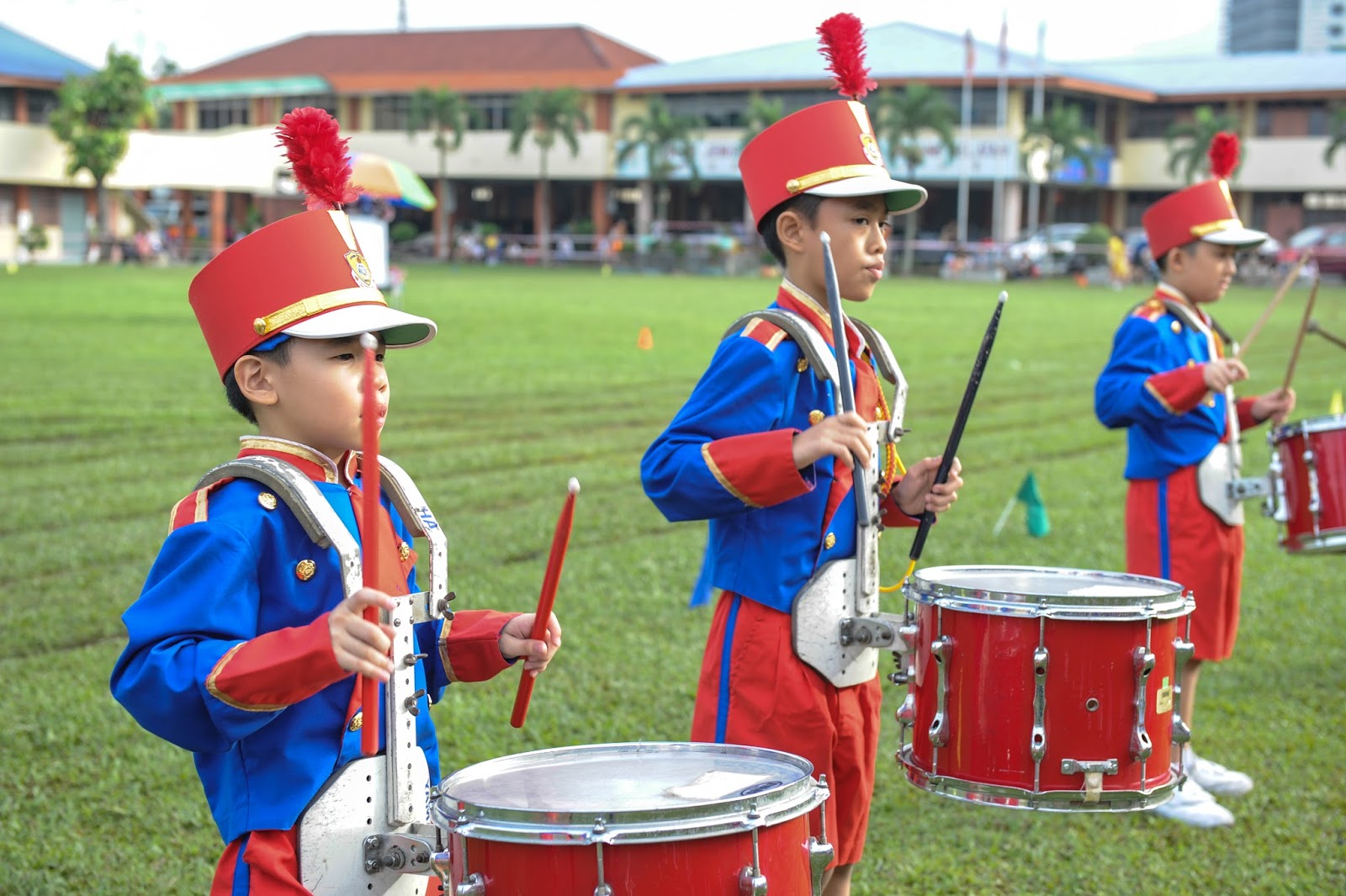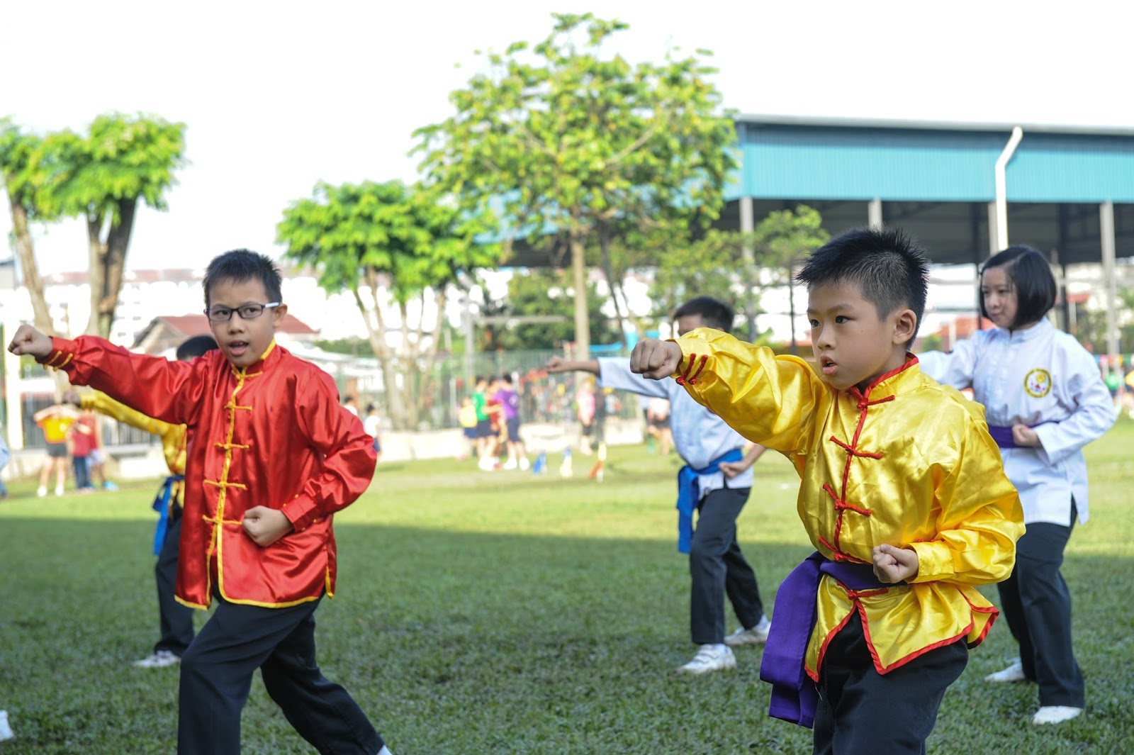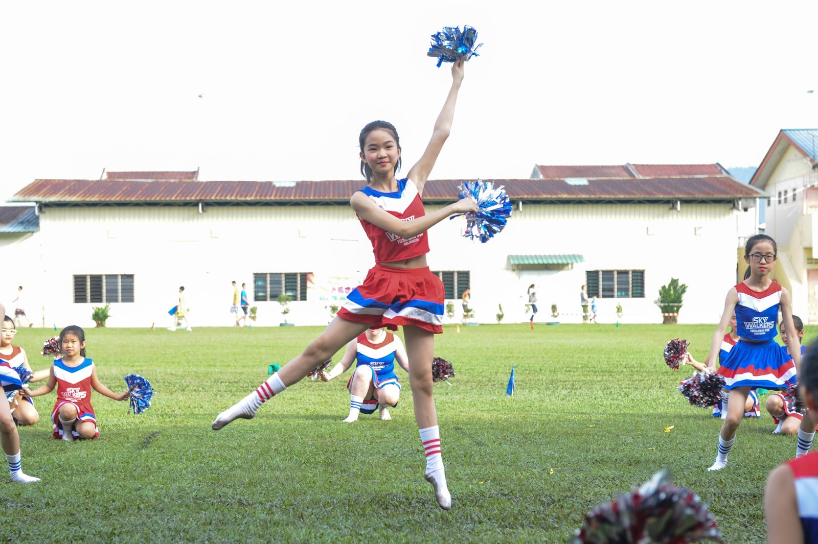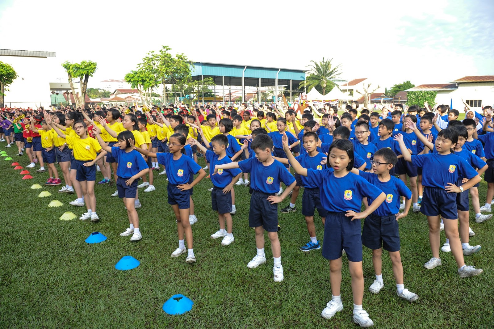 一大清早,全校师生都来到了运动场,他们有的布置场地 ,有的整理服装,有的安放运动器材,大家忙得不亦乐乎,原本寂静的赛场一下子热闹起来。