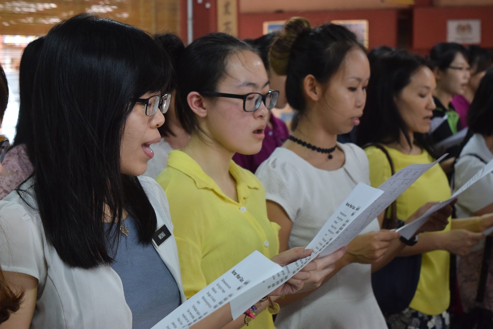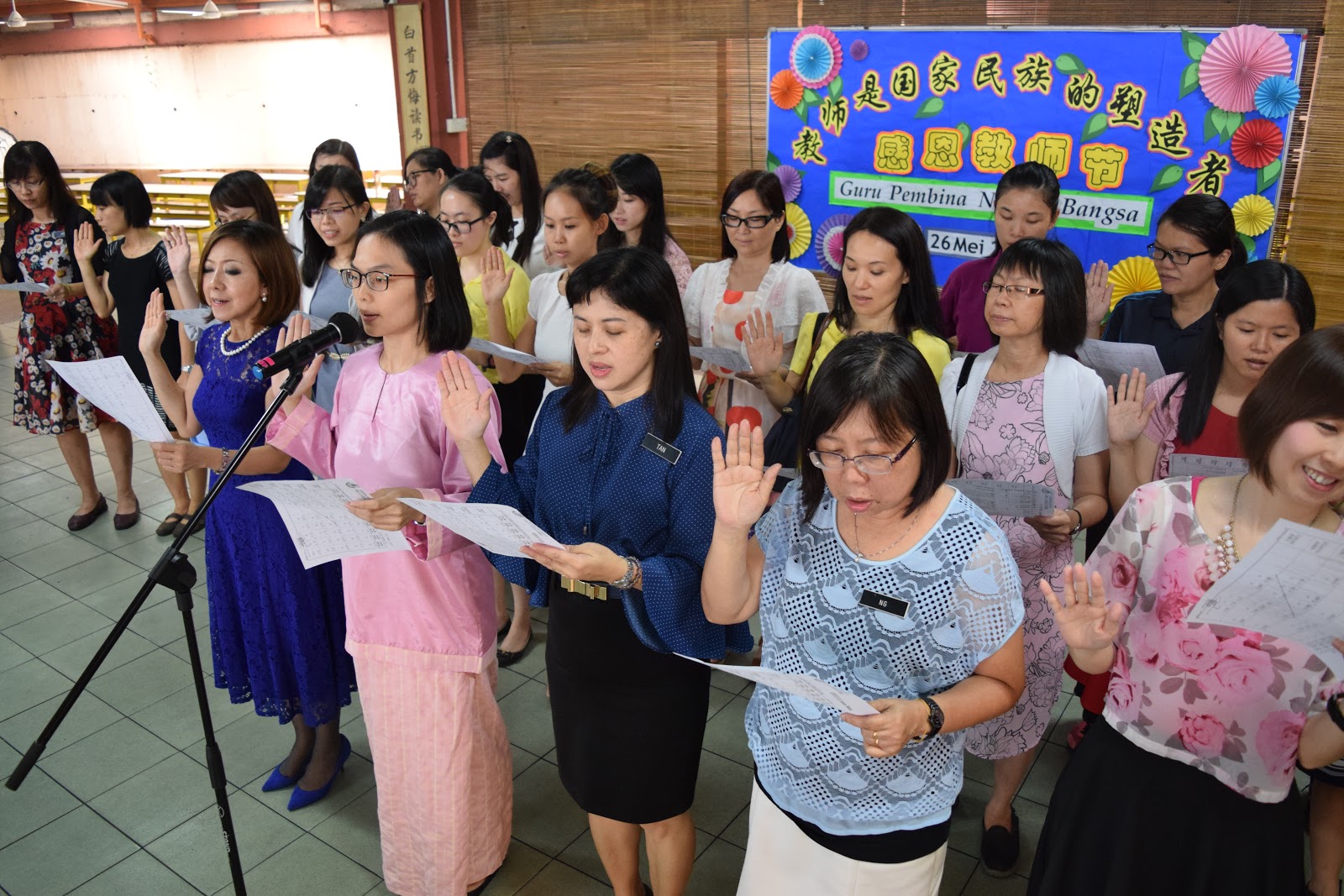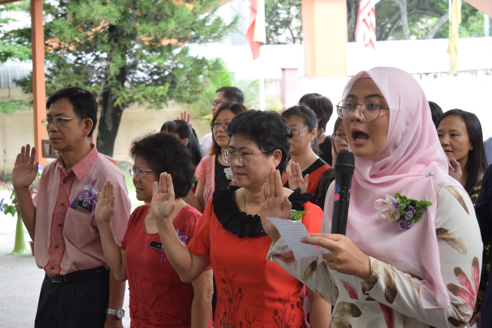 | Cikgu Nurul Ain 带领老师们宣誓 |