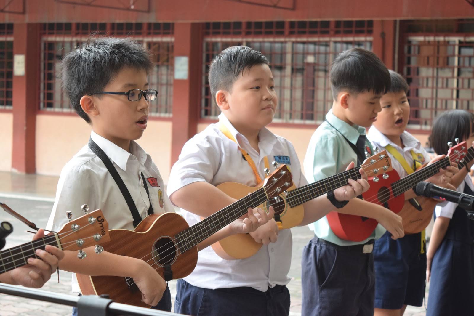 学生为老师呈现一系列的精彩的余兴节目: 舞蹈、独唱、律动舞铃、乌克丽丽演奏、器械操、手语等。