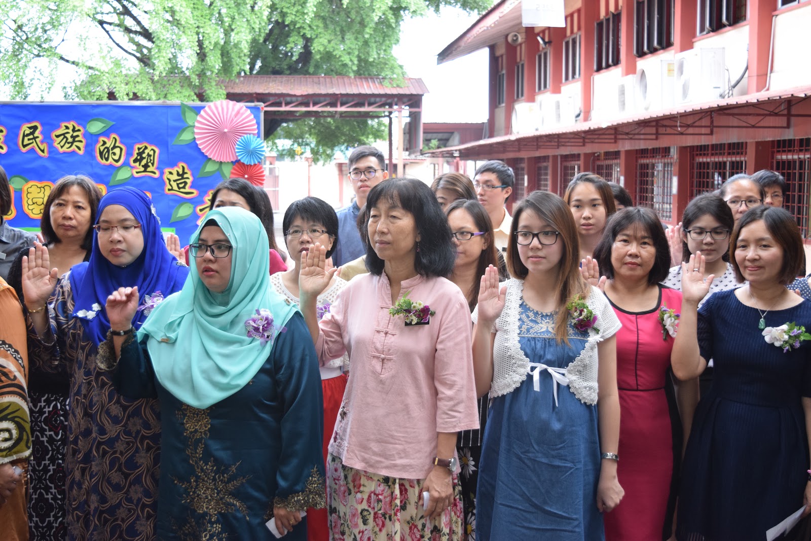 | Cikgu Nurul Ain 带领老师们宣誓 |