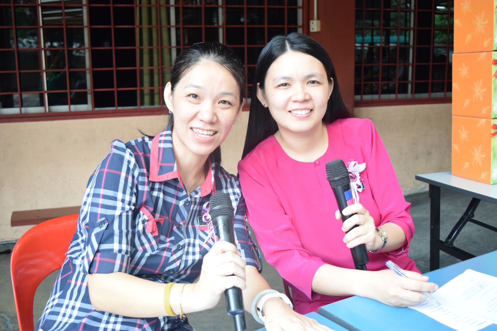 | 两位漂亮的司仪:黄美美老师及林惠艳老师 |