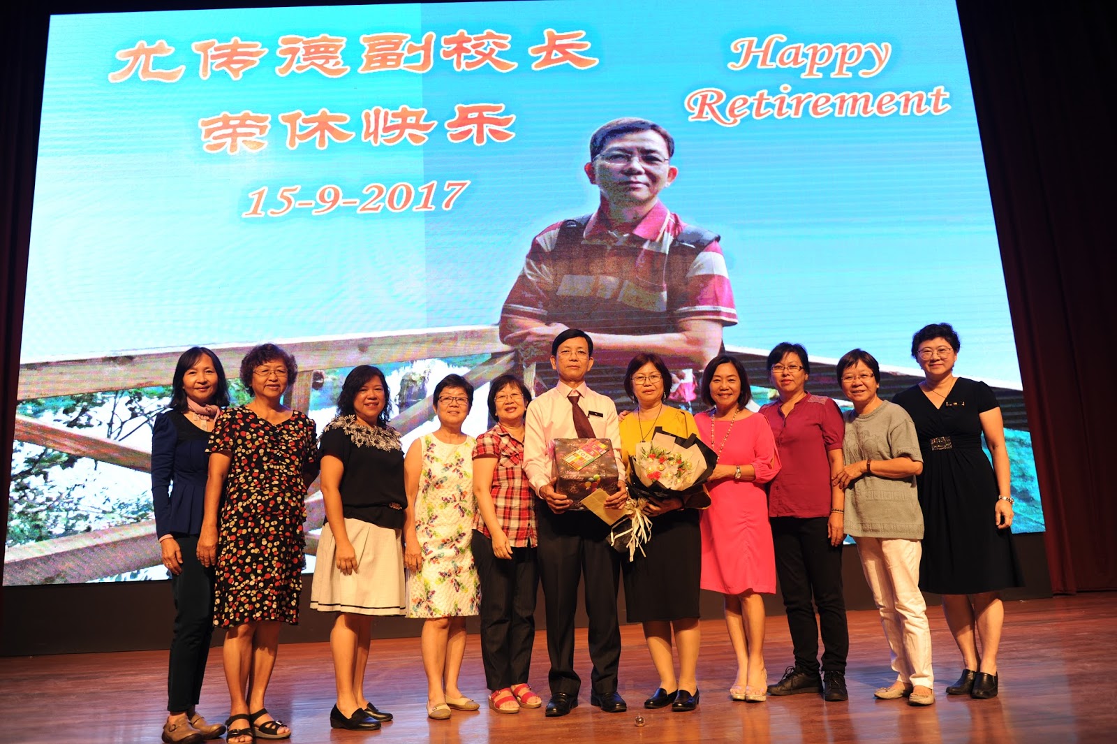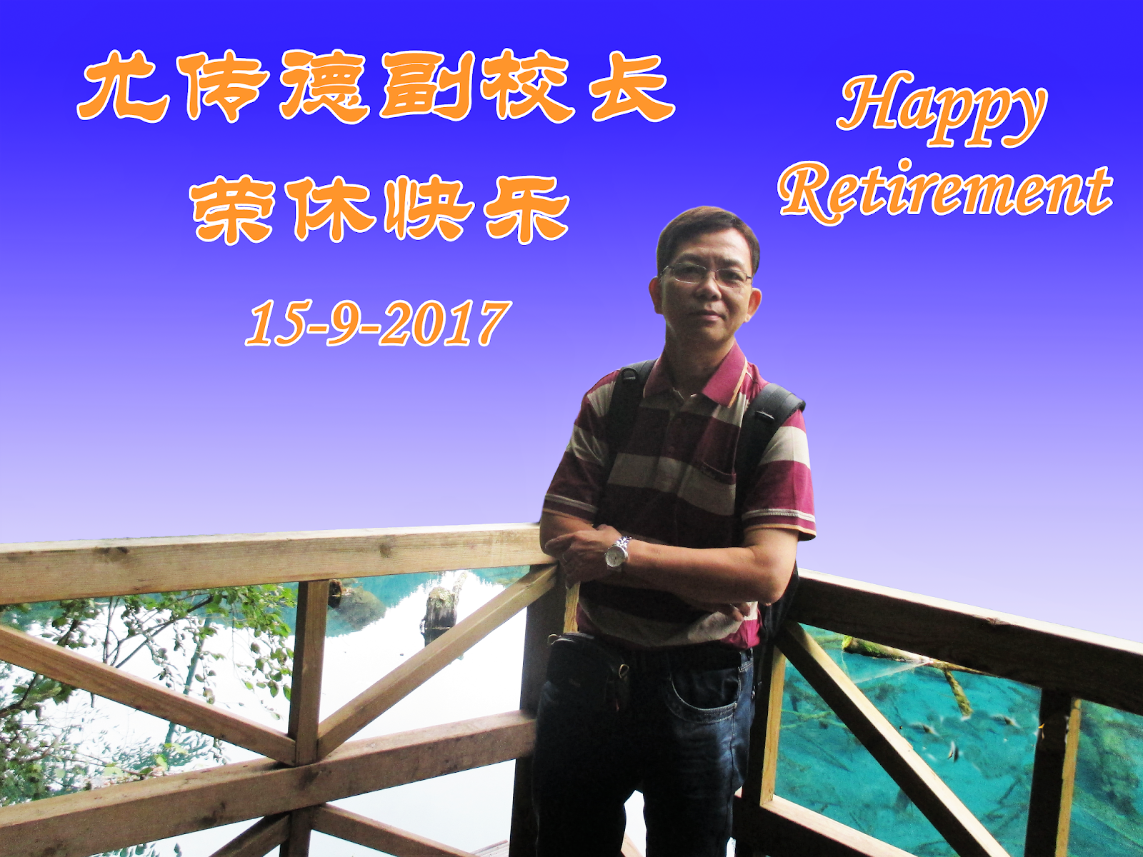 2017年9月15日(星期五),我们在本校新建的综合大礼堂办了自开幕以来的第一场活动,那就是我们为亲爱的尤传德副校长办了一场温馨又不失隆重的荣休仪式。对尤副校长的离去,我们虽然有着许多说不出口的不舍,但是我们依然带着祝福的心,祝愿退休后的尤副校长生活更美满、更充实、更多姿多彩。