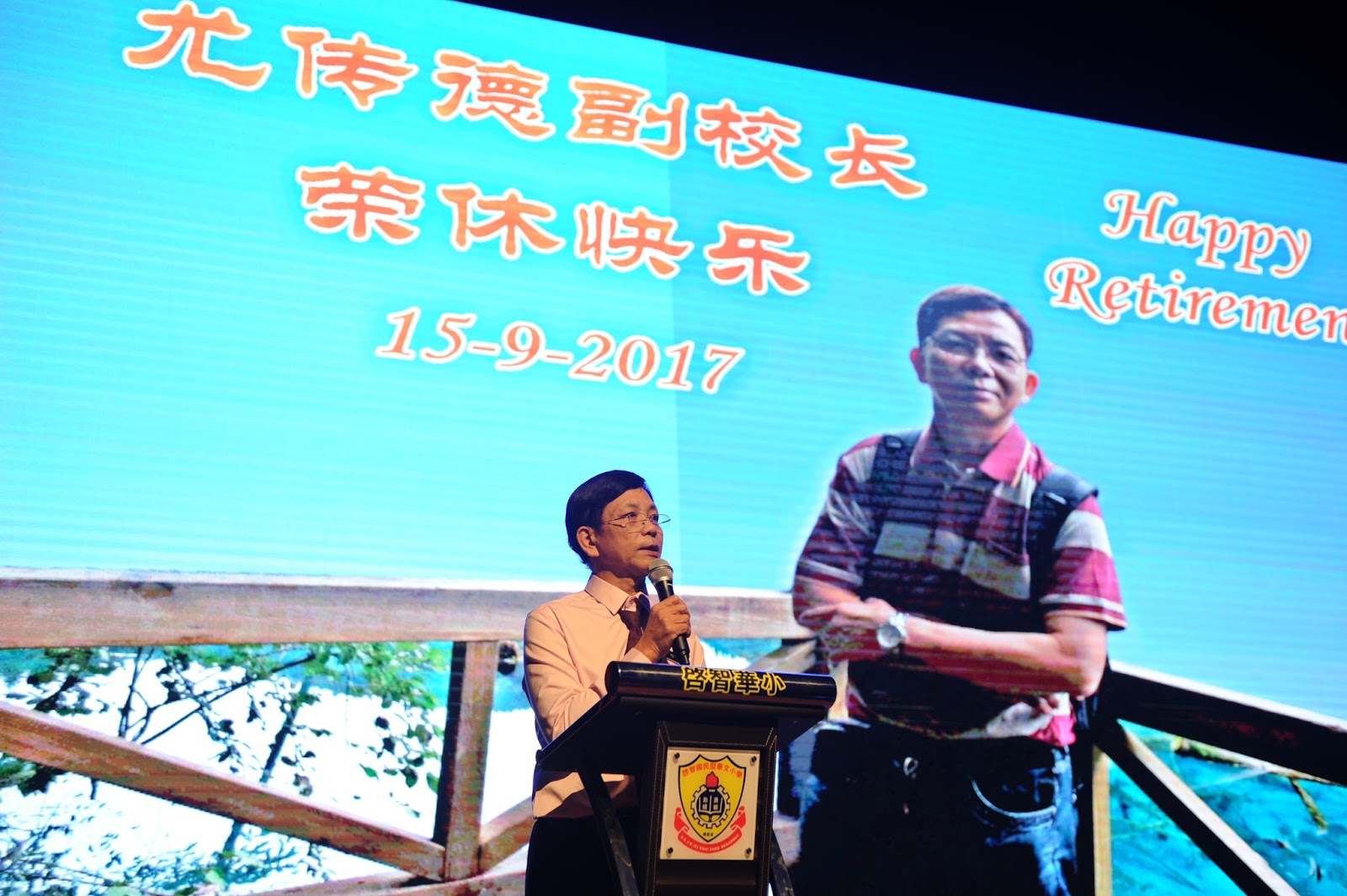 2017年9月15日(星期五),我们在本校新建的综合大礼堂办了自开幕以来的第一场活动,那就是我们为亲爱的尤传德副校长办了一场温馨又不失隆重的荣休仪式。对尤副校长的离去,我们虽然有着许多说不出口的不舍,但是我们依然带着祝福的心,祝愿退休后的尤副校长生活更美满、更充实、更多姿多彩。
