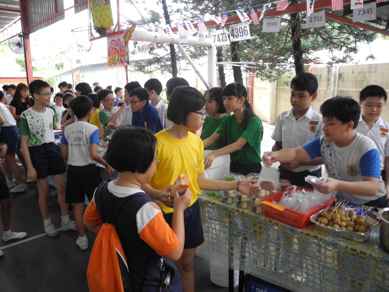在学校篮球场上如火如荼地进行这有意义的活动。