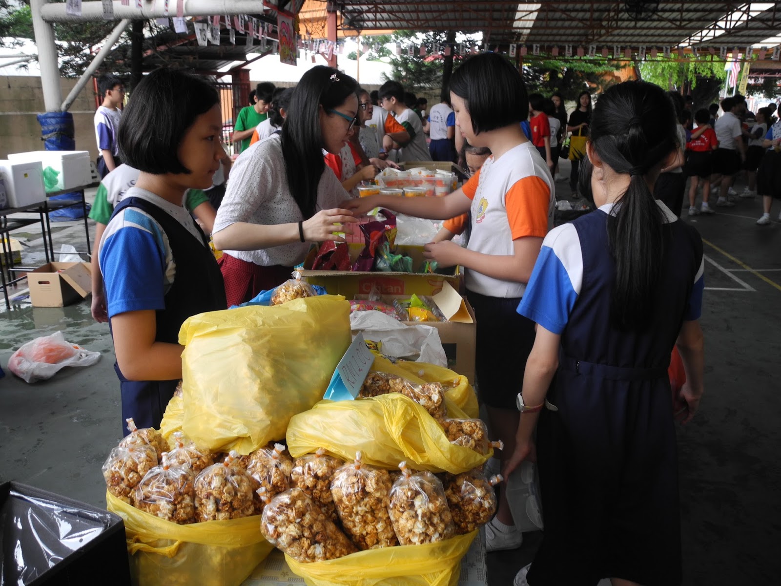 把商品都拿到老师办公室以及食堂去叫卖…….