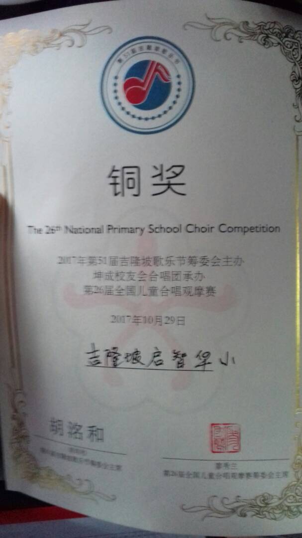 启智荣获国语演讲亚军和季军。国语笔试优秀奖。