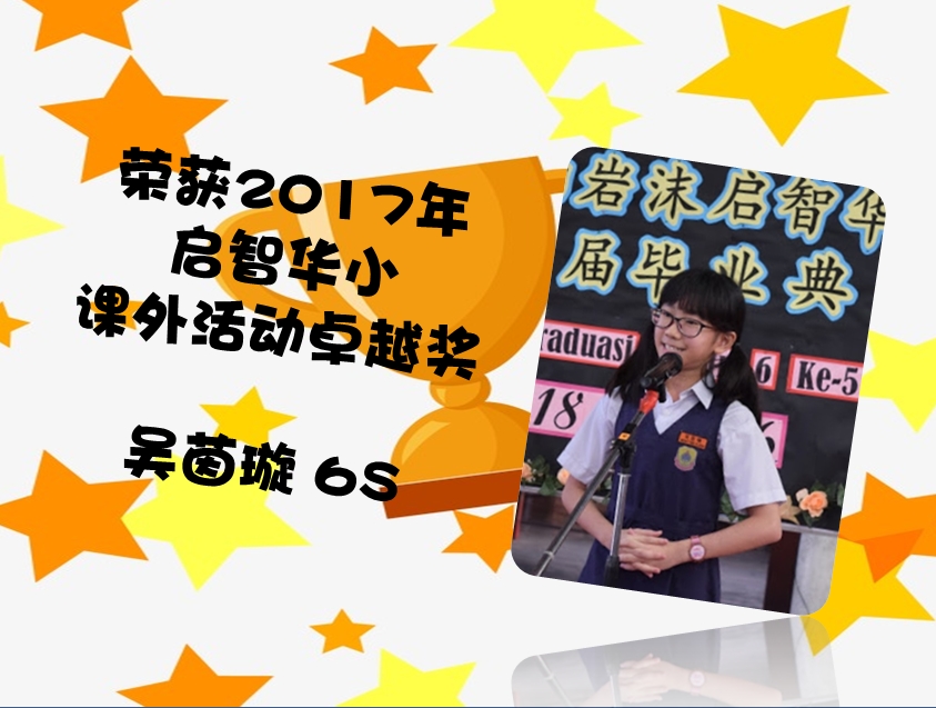 启智荣获国语演讲亚军和季军。国语笔试优秀奖。
