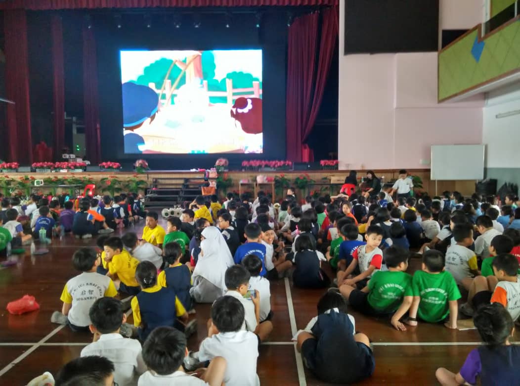 比赛结束了,收拾好东西后,大家一边吃月饼一边观赏动画。