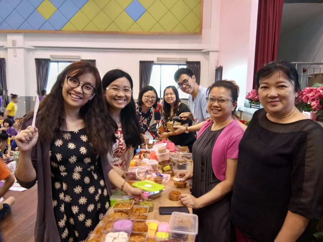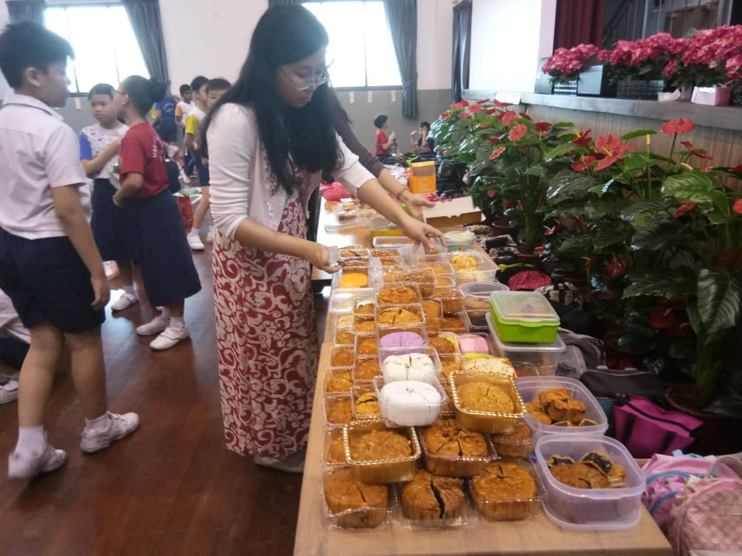 同一时间,老师们把学生们带来的月饼平均切块,