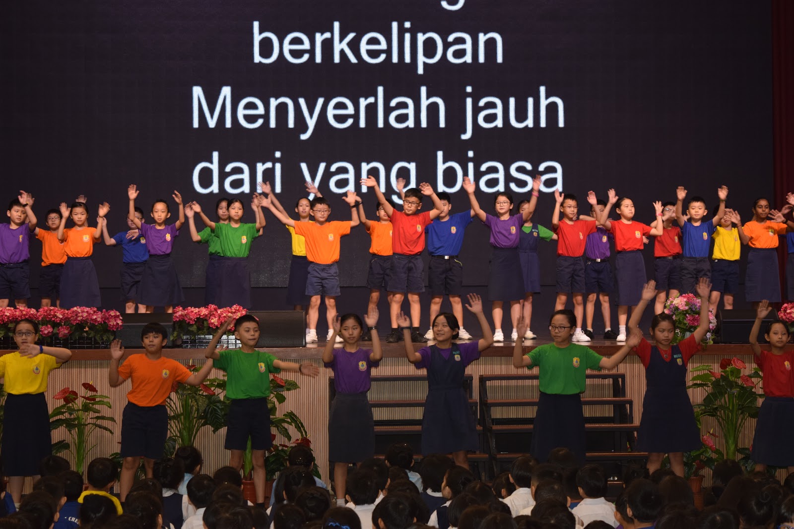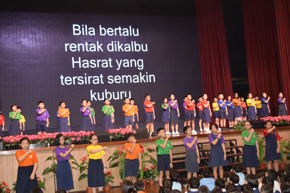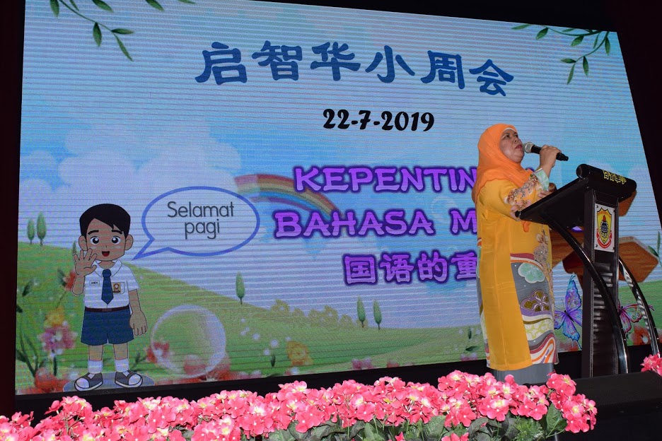 星期一的周会上,国语主任Cikgu Norlita就在讲台上与同学们分享国语的重要性