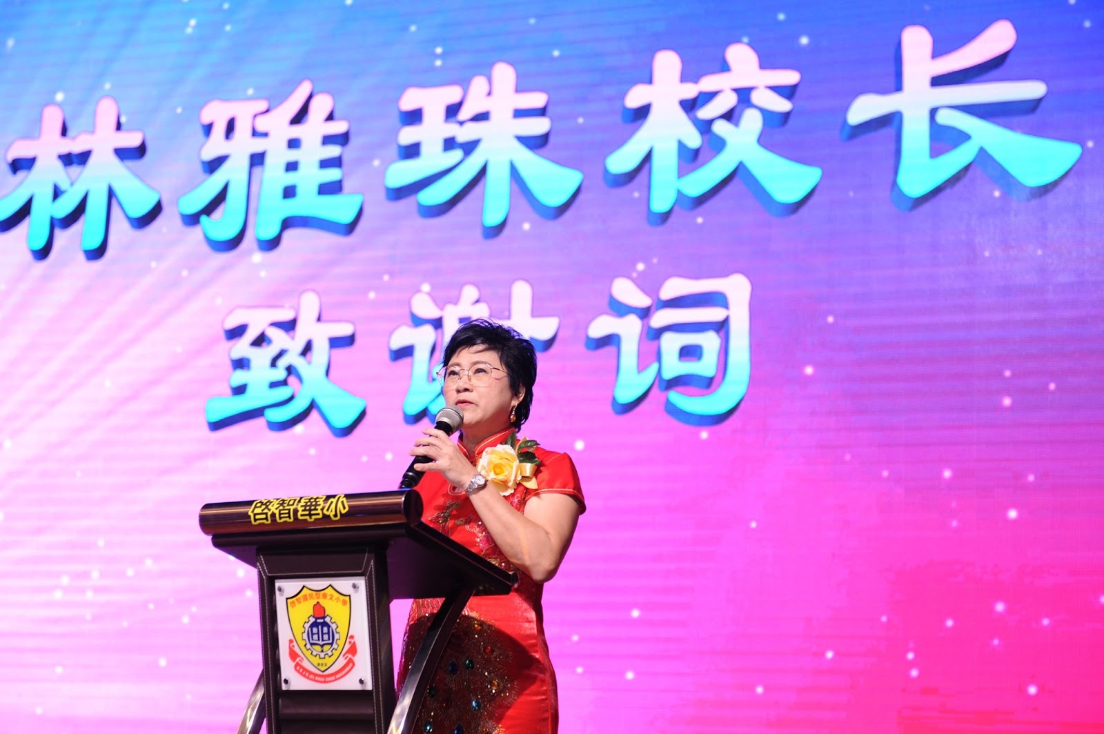 林雅珠校长服务杏坛38年,在荣休晚宴上,全体吉隆坡校长受邀上台为林校长高歌一曲 —–《月亮代表我的心》,令启智大礼堂顿时好歌绕梁。